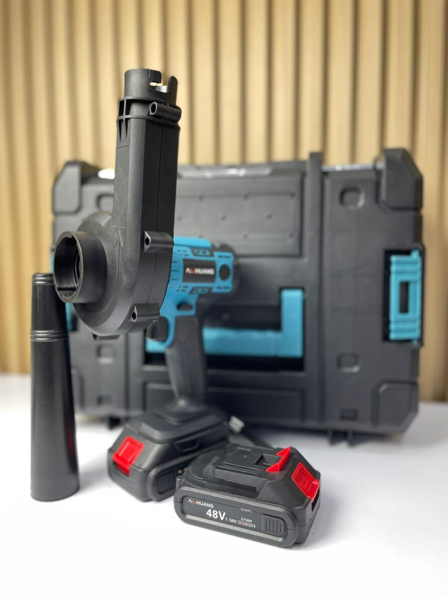 Caja de multiherramienta inalámbrica 48V Li-Ion, diseñada para uso doméstico, profesional y de mantenimiento general. Este sistema modular incluye un cuerpo base motorizado al que pueden acoplarse distintos cabezales funcionales, permitiendo realizar tareas de perforación, atornillado, soplado, corte y pulido con una sola herramienta. Su diseño portátil, con alimentación mediante batería de ion de litio recargable, proporciona autonomía y versatilidad en trabajos interiores y exteriores.
