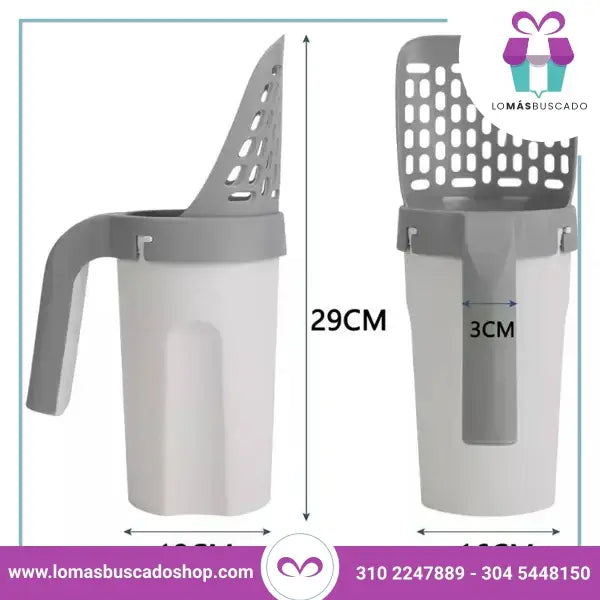 Pala recogedor de desechos para caja de arena de gato.
